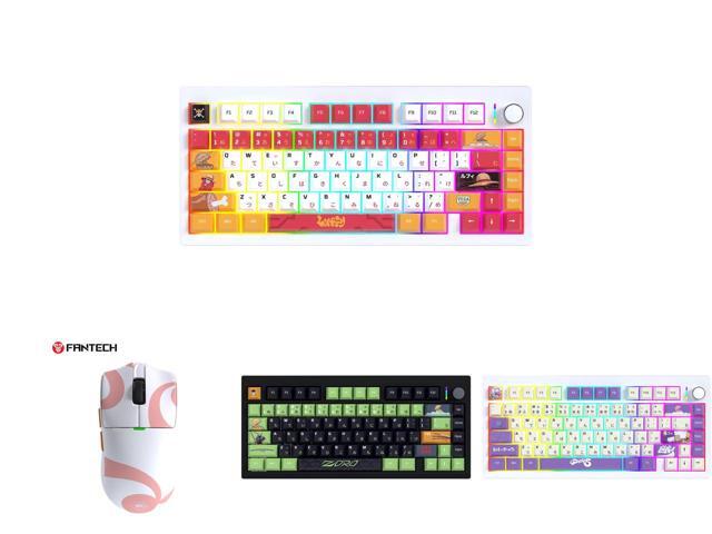 FANTECH MK921 Gaming Mechanical Keyboard,One Piece Edition, Wireless/Wired/BT Connection ,RBG Controls, 80 Keys, USB-C Interface, Brown Shaft, White red,Luffy and 1 x Fantech One Piece Nami Edition Wireless Gaming Mouse, PixArt PAW3311 Sensor, 57g Lightweight, Tri-Mode Connectivity, RGB Charging Dock, 12000 DPI for PC & Mac, WG13E PINK and 1 x FANTECH MK921 Gaming Mechanical Keyboard,One Piece Edition, Wireless/Wired/BT Connection ,RBG Controls, 80 Keys, USB-C Interface, Brown Shaft, Black Green,Zoro and 1 x FANTECH MK921 Gaming Mechanical Keyboard,One Piece Edition, Wireless/Wired/BT Connection ,RBG Controls, 80 Keys, USB-C Interface, Brown Shaft, White Purple,Gear5