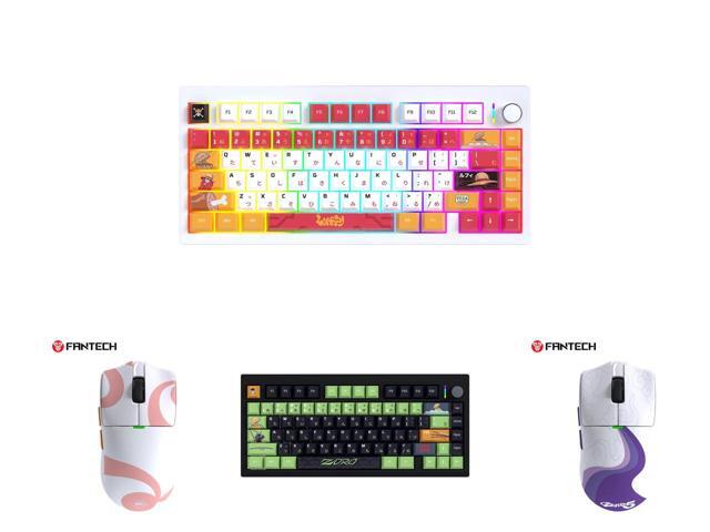 FANTECH MK921 Gaming Mechanical Keyboard,One Piece Edition, Wireless/Wired/BT Connection ,RBG Controls, 80 Keys, USB-C Interface, Brown Shaft, White red,Luffy and 1 x Fantech One Piece Nami Edition Wireless Gaming Mouse, PixArt PAW3311 Sensor, 57g Lightweight, Tri-Mode Connectivity, RGB Charging Dock, 12000 DPI for PC & Mac, WG13E PINK and 1 x FANTECH MK921 Gaming Mechanical Keyboard,One Piece Edition, Wireless/Wired/BT Connection ,RBG Controls, 80 Keys, USB-C Interface, Brown Shaft, Black Green,Zoro and 1 x Fantech One Piece Gear 5 Luffy Edition Wireless Gaming Mouse, PixArt PAW3311 Sensor, 57g Lightweight, Tri-Mode Connectivity, RGB Charging Dock, 12000 DPI for PC & Mac, WG13E Purple