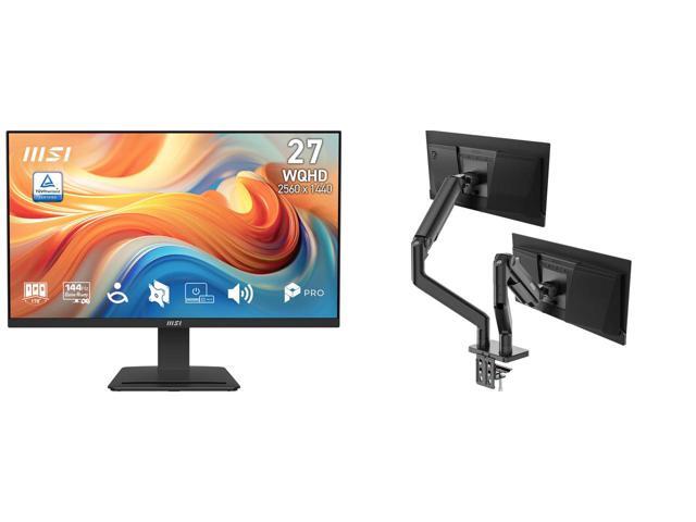 MSI 27" WQHD 2K 1440P 144Hz IPS 1ms LCD Computer Monitor with Built-in Speakers for both Work & Gaming PRO MP273Q E14 MSI MAG MT201D - Premium Heavy Duty Dual Monitor Stand Arms, 17-45" Support, VESA Compatible, Adjustable Spring Assisted M