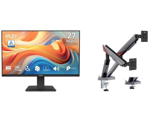 MSI 27" WQHD 2K 1440P 144Hz IPS 1ms LCD Computer Monitor with Built-in Speakers for both Work & Gaming PRO MP273Q E14 MSI MPG MT161DR - Premium RGB Dual Monitor Stand Arms, 17-38" Support, VESA Compatible, Adjustable Spring Assisted Mount,