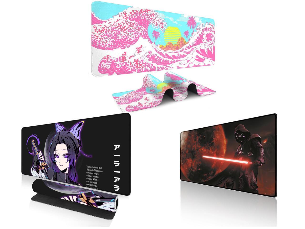 Alpha Fit Pink Sakura Great Wave Gaming Mouse Pad XXL (35.4" x 15.7") - Cute Cherry Blossom Japanese Art Desk Mat - Kawaii Aesthetic Extended Mousepad and 1 x Alpha Fit Anime Gaming Mouse Pad XXL (35.4" x 15.7") - Purple Butterfly Swordswoman - Large Mouse Pad Extended - Extra Large Gaming Mouse Pads Ara Ara Katana Style - 06 and 1 x Alpha Fit Starwar Gaming Mouse Pad XXL (31.5" x 11.8") - Star Wars Themed Large Mouse Pad - Extra Large Gaming Mouse Pads with Non-Slip Rubber Base & Stitched Edges for Sci-Fi Setup