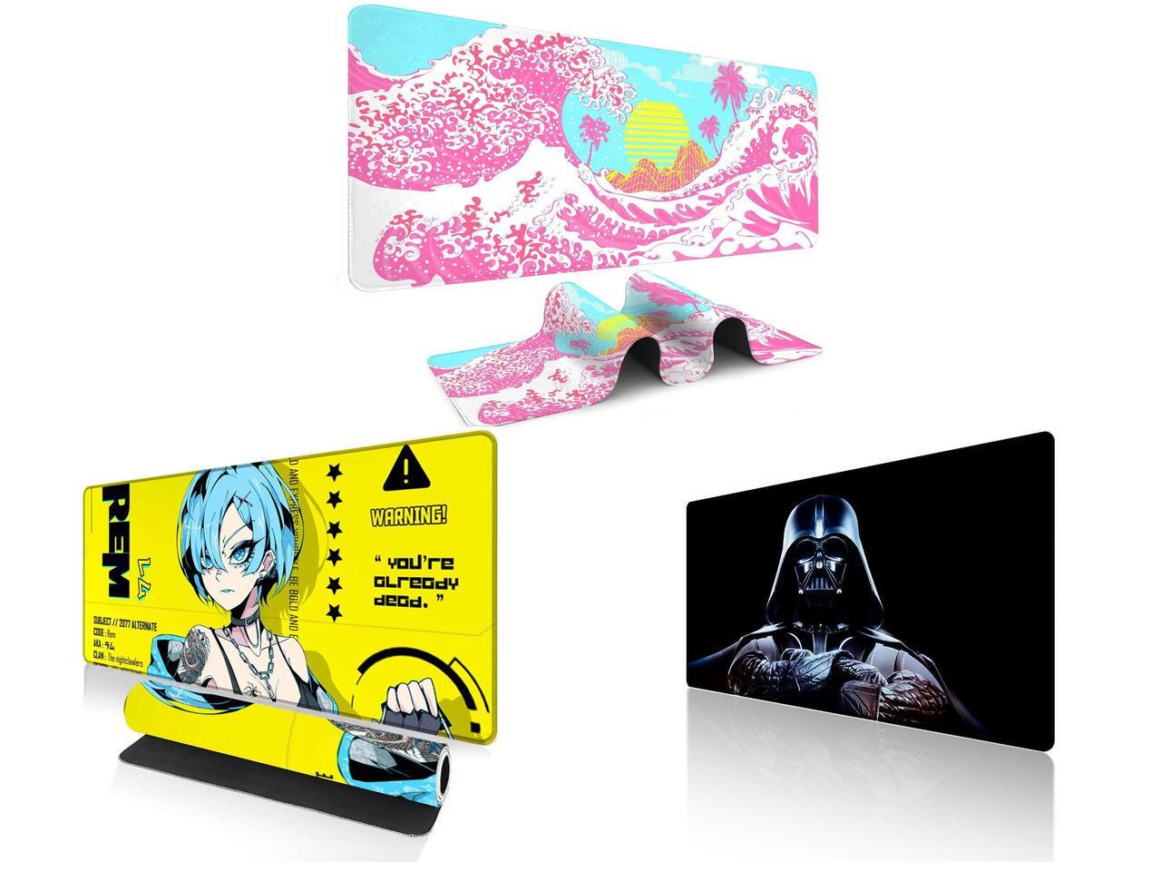 Alpha Fit Pink Sakura Great Wave Gaming Mouse Pad XXL (35.4" x 15.7") - Cute Cherry Blossom Japanese Art Desk Mat - Kawaii Aesthetic Extended Mousepad and 1 x Alpha Fit Anime Gaming Mouse Pad XXL (35.4" x 15.7") - Cyberpunk Blue Haired Girl - Large Mouse Pad Extended - Extra Large Gaming Mouse Pads Yellow Caution Style - 07 and 1 x Alpha Fit Star Wars Gaming Mouse Pad XXL (31.5" x 11.8") - Darth Vader Dark Side Art - Large Mouse Pad Extended - Extra Large Gaming Mouse Pads Sith Lord Desk Mat 31