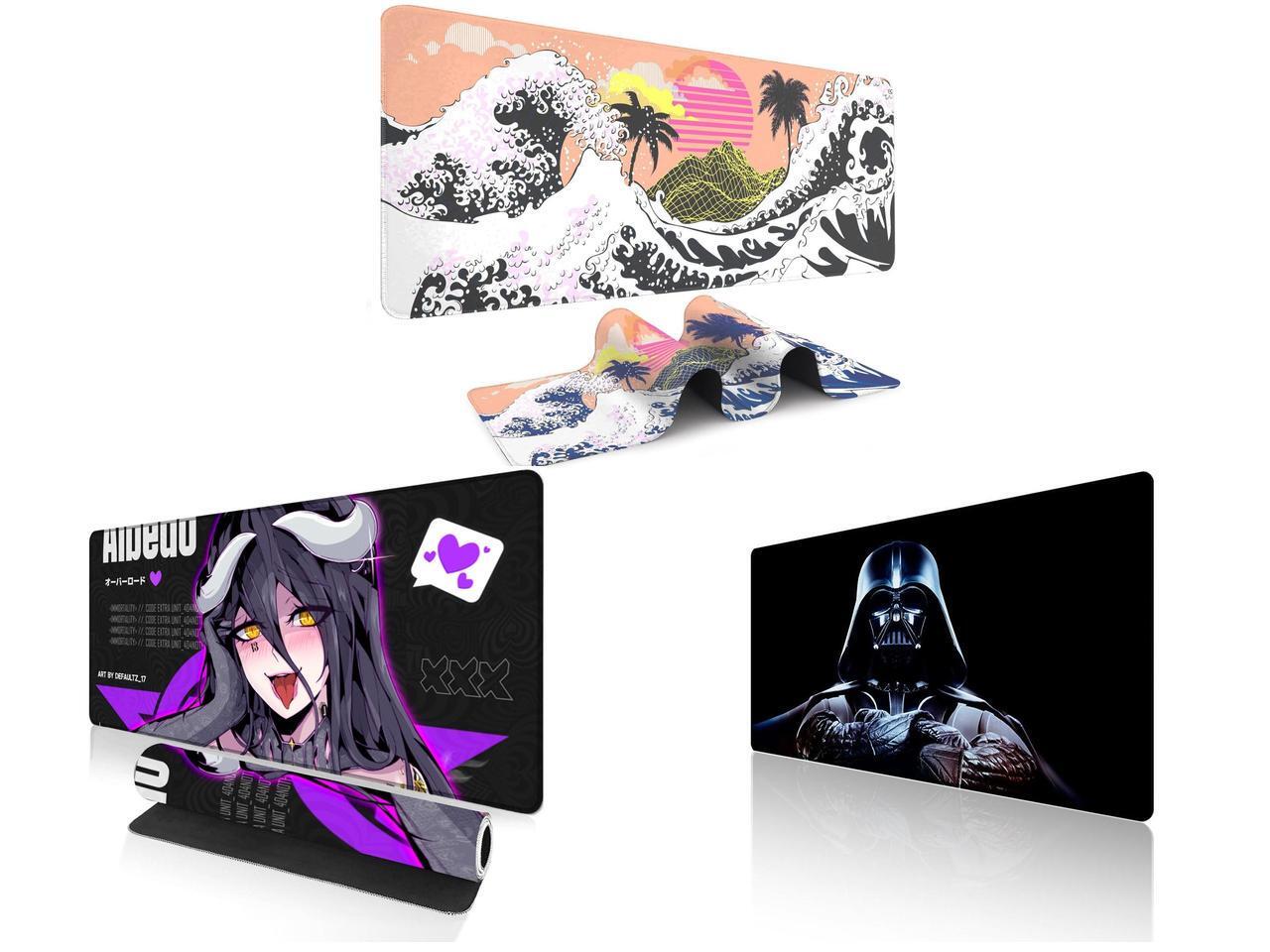 Alpha Fit Orange Sunset Great Wave Gaming Mouse Pad XXL (35.4" x 15.7") - Warm Golden Hour Japanese Art Desk Mat - Lofi Aesthetic Extended Pad and 1 x Alpha Fit Anime Gaming Mouse Pad XXL (35.4" x 15.7") - Dark Fantasy Succubus Girl - Large Mouse Pad Extended - Extra Large Gaming Mouse Pads Purple Waifu Style - 02 and 1 x Alpha Fit Star Wars Gaming Mouse Pad XXL (31.5" x 11.8") - Darth Vader Dark Side Art - Large Mouse Pad Extended - Extra Large Gaming Mouse Pads Sith Lord Desk Mat 31
