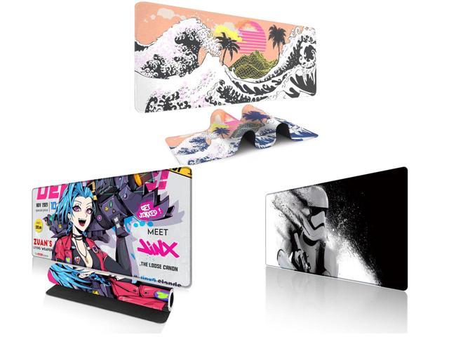 Alpha Fit Orange Sunset Great Wave Gaming Mouse Pad XXL (35.4" x 15.7") - Warm Golden Hour Japanese Art Desk Mat - Lofi Aesthetic Extended Pad and 1 x Alpha Fit Anime Gaming Mouse Pad XXL (35.4" x 15.7") - Blue Punk Graffiti Girl - Large Mouse Pad Extended - Extra Large Gaming Mouse Pads Loose Cannon Style - 03 and 1 x Alpha Fit Star Wars Gaming Mouse Pad XXL (31.5" x 11.8") - Stormtrooper Shatter Black & White - Large Mouse Pad Extended - Sci-Fi Galaxy Empire Desk Mat 12