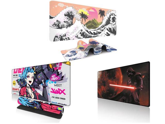 Alpha Fit Orange Sunset Great Wave Gaming Mouse Pad XXL (35.4" x 15.7") - Warm Golden Hour Japanese Art Desk Mat - Lofi Aesthetic Extended Pad and 1 x Alpha Fit Anime Gaming Mouse Pad XXL (35.4" x 15.7") - Blue Punk Graffiti Girl - Large Mouse Pad Extended - Extra Large Gaming Mouse Pads Loose Cannon Style - 03 and 1 x Alpha Fit Starwar Gaming Mouse Pad XXL (31.5" x 11.8") - Star Wars Themed Large Mouse Pad - Extra Large Gaming Mouse Pads with Non-Slip Rubber Base & Stitched Edges for Sci-Fi Setup