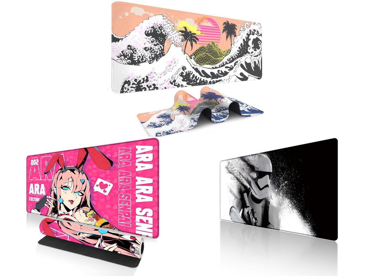 Alpha Fit Orange Sunset Great Wave Gaming Mouse Pad XXL (35.4" x 15.7") - Warm Golden Hour Japanese Art Desk Mat - Lofi Aesthetic Extended Pad and 1 x Alpha Fit Anime Gaming Mouse Pad XXL (35.4" x 15.7") - Pink Bunny Girl Waifu - Large Mouse Pad Extended - Extra Large Gaming Mouse Pads Ara Ara Senpai Style - 04 and 1 x Alpha Fit Star Wars Gaming Mouse Pad XXL (31.5" x 11.8") - Stormtrooper Shatter Black & White - Large Mouse Pad Extended - Sci-Fi Galaxy Empire Desk Mat 12
