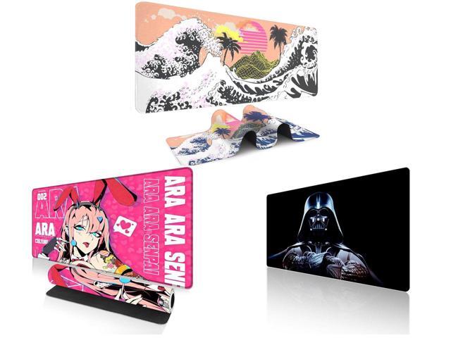 Alpha Fit Orange Sunset Great Wave Gaming Mouse Pad XXL (35.4" x 15.7") - Warm Golden Hour Japanese Art Desk Mat - Lofi Aesthetic Extended Pad and 1 x Alpha Fit Anime Gaming Mouse Pad XXL (35.4" x 15.7") - Pink Bunny Girl Waifu - Large Mouse Pad Extended - Extra Large Gaming Mouse Pads Ara Ara Senpai Style - 04 and 1 x Alpha Fit Star Wars Gaming Mouse Pad XXL (31.5" x 11.8") - Darth Vader Dark Side Art - Large Mouse Pad Extended - Extra Large Gaming Mouse Pads Sith Lord Desk Mat 31