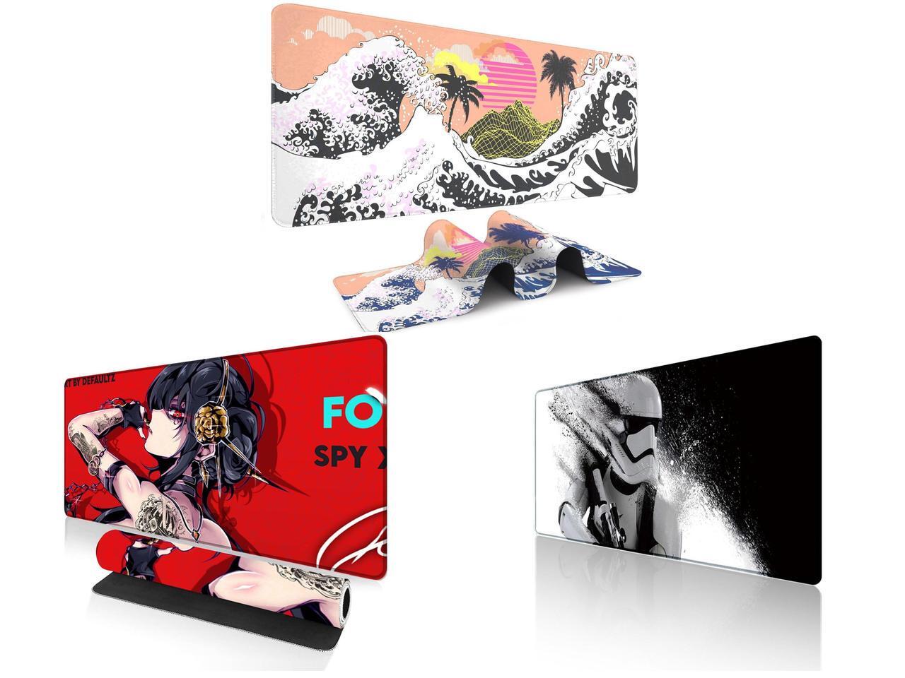 Alpha Fit Orange Sunset Great Wave Gaming Mouse Pad XXL (35.4" x 15.7") - Warm Golden Hour Japanese Art Desk Mat - Lofi Aesthetic Extended Pad and 1 x Alpha Fit Anime Gaming Mouse Pad XXL (35.4" x 15.7") - Red Rose Assassin Girl - Large Mouse Pad Extended - Extra Large Gaming Mouse Pads Secret Agent Style - 11 and 1 x Alpha Fit Star Wars Gaming Mouse Pad XXL (31.5" x 11.8") - Stormtrooper Shatter Black & White - Large Mouse Pad Extended - Sci-Fi Galaxy Empire Desk Mat 12