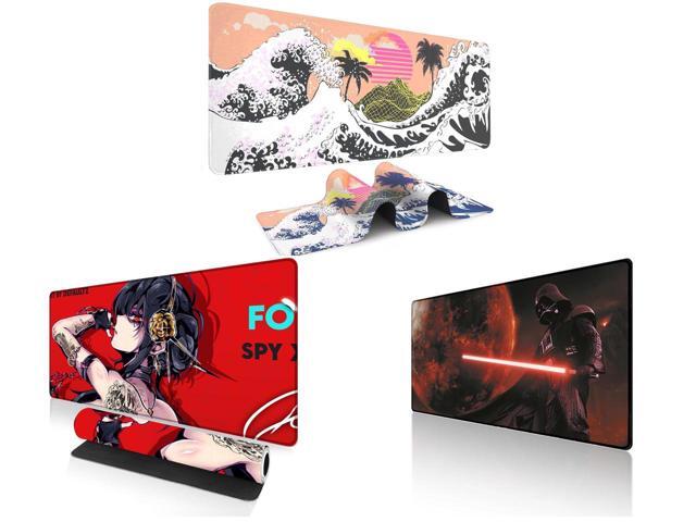 Alpha Fit Orange Sunset Great Wave Gaming Mouse Pad XXL (35.4" x 15.7") - Warm Golden Hour Japanese Art Desk Mat - Lofi Aesthetic Extended Pad and 1 x Alpha Fit Anime Gaming Mouse Pad XXL (35.4" x 15.7") - Red Rose Assassin Girl - Large Mouse Pad Extended - Extra Large Gaming Mouse Pads Secret Agent Style - 11 and 1 x Alpha Fit Starwar Gaming Mouse Pad XXL (31.5" x 11.8") - Star Wars Themed Large Mouse Pad - Extra Large Gaming Mouse Pads with Non-Slip Rubber Base & Stitched Edges for Sci-Fi Setup