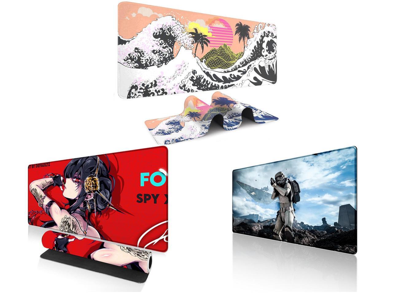 Alpha Fit Orange Sunset Great Wave Gaming Mouse Pad XXL (35.4" x 15.7") - Warm Golden Hour Japanese Art Desk Mat - Lofi Aesthetic Extended Pad and 1 x Alpha Fit Anime Gaming Mouse Pad XXL (35.4" x 15.7") - Red Rose Assassin Girl - Large Mouse Pad Extended - Extra Large Gaming Mouse Pads Secret Agent Style - 11 and 1 x Alpha Fit Star Wars Gaming Mouse Pad XXL (31.5" x 11.8") - Imperial Stormtrooper & Star Destroyer Battle Art - Large Extended Desk Mat - Non-Slip Rubber Base for PC & Laptop Gaming Setup