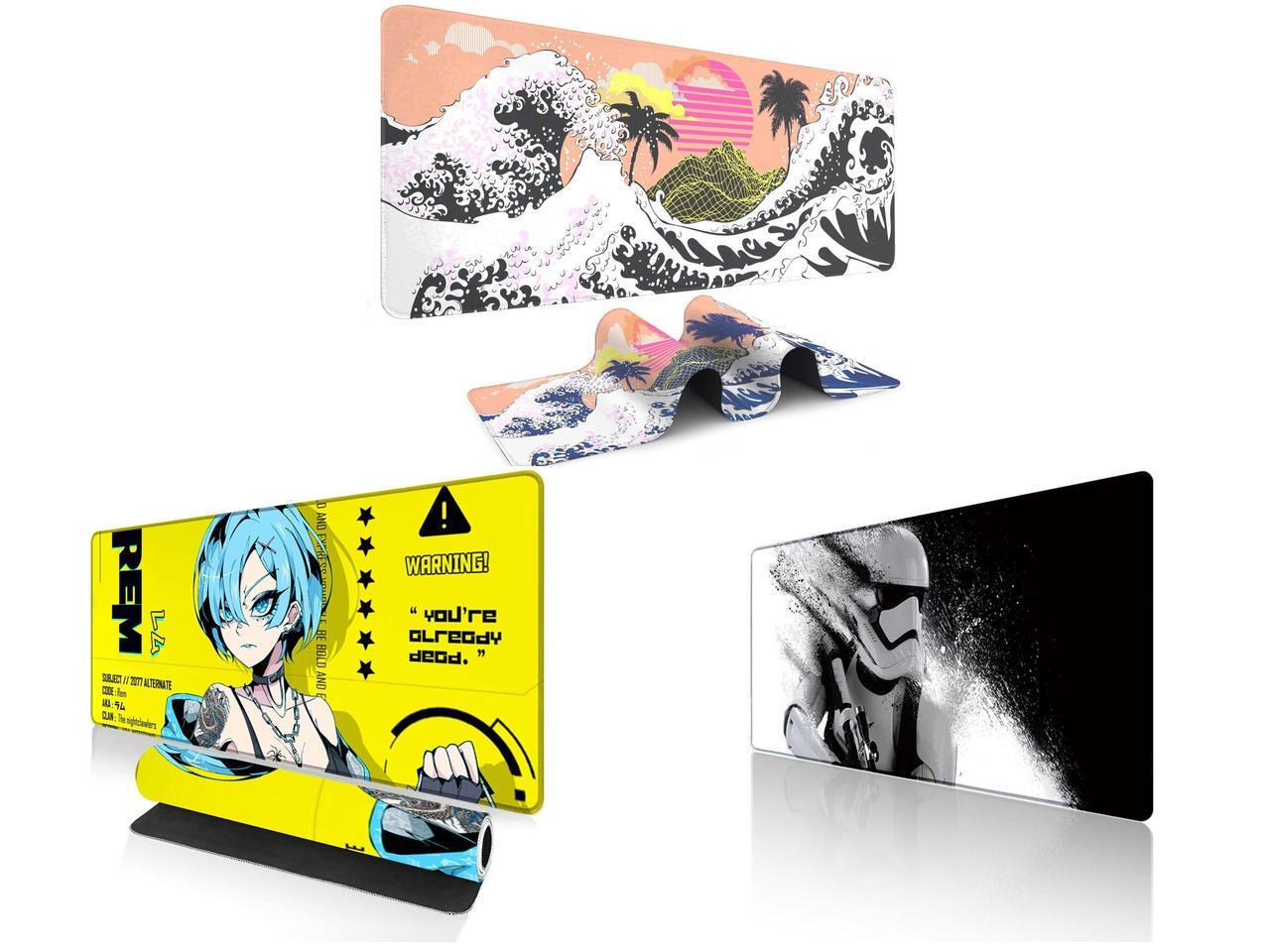 Alpha Fit Orange Sunset Great Wave Gaming Mouse Pad XXL (35.4" x 15.7") - Warm Golden Hour Japanese Art Desk Mat - Lofi Aesthetic Extended Pad and 1 x Alpha Fit Anime Gaming Mouse Pad XXL (35.4" x 15.7") - Cyberpunk Blue Haired Girl - Large Mouse Pad Extended - Extra Large Gaming Mouse Pads Yellow Caution Style - 07 and 1 x Alpha Fit Star Wars Gaming Mouse Pad XXL (31.5" x 11.8") - Stormtrooper Shatter Black & White - Large Mouse Pad Extended - Sci-Fi Galaxy Empire Desk Mat 12