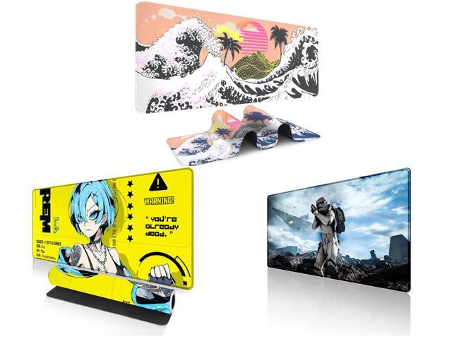 Alpha Fit Orange Sunset Great Wave Gaming Mouse Pad XXL (35.4" x 15.7") - Warm Golden Hour Japanese Art Desk Mat - Lofi Aesthetic Extended Pad and 1 x Alpha Fit Anime Gaming Mouse Pad XXL (35.4" x 15.7") - Cyberpunk Blue Haired Girl - Large Mouse Pad Extended - Extra Large Gaming Mouse Pads Yellow Caution Style - 07 and 1 x Alpha Fit Star Wars Gaming Mouse Pad XXL (31.5" x 11.8") - Imperial Stormtrooper & Star Destroyer Battle Art - Large Extended Desk Mat - Non-Slip Rubber Base for PC & Laptop Gaming Setup