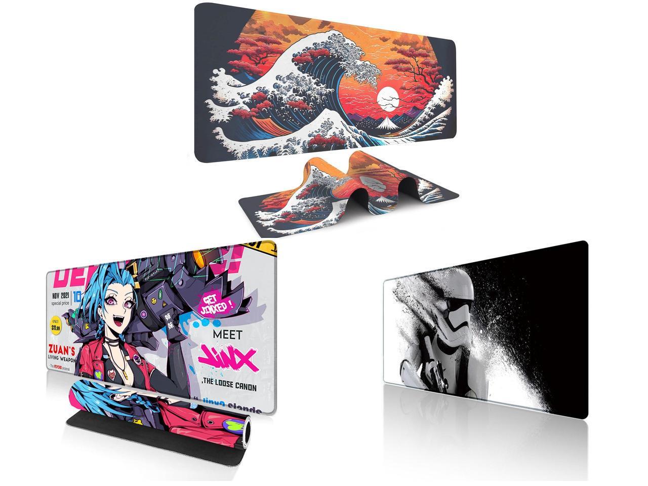 Alpha Fit Orange Sunset Great Wave Gaming Mouse Pad XXL (35.4" x 15.7") - Warm Golden Hour Japanese Art Desk Mat - Lofi Aesthetic Extended Pad and 1 x Alpha Fit Anime Gaming Mouse Pad XXL (35.4" x 15.7") - Blue Punk Graffiti Girl - Large Mouse Pad Extended - Extra Large Gaming Mouse Pads Loose Cannon Style - 03 and 1 x Alpha Fit Star Wars Gaming Mouse Pad XXL (31.5" x 11.8") - Stormtrooper Shatter Black & White - Large Mouse Pad Extended - Sci-Fi Galaxy Empire Desk Mat 12