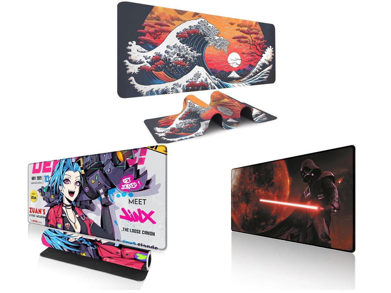 Alpha Fit Orange Sunset Great Wave Gaming Mouse Pad XXL (35.4" x 15.7") - Warm Golden Hour Japanese Art Desk Mat - Lofi Aesthetic Extended Pad and 1 x Alpha Fit Anime Gaming Mouse Pad XXL (35.4" x 15.7") - Blue Punk Graffiti Girl - Large Mouse Pad Extended - Extra Large Gaming Mouse Pads Loose Cannon Style - 03 and 1 x Alpha Fit Starwar Gaming Mouse Pad XXL (31.5" x 11.8") - Star Wars Themed Large Mouse Pad - Extra Large Gaming Mouse Pads with Non-Slip Rubber Base & Stitched Edges for Sci-Fi Setup