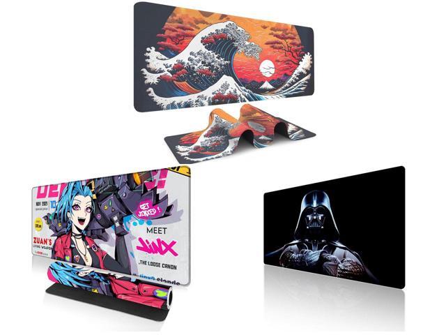 Alpha Fit Orange Sunset Great Wave Gaming Mouse Pad XXL (35.4" x 15.7") - Warm Golden Hour Japanese Art Desk Mat - Lofi Aesthetic Extended Pad and 1 x Alpha Fit Anime Gaming Mouse Pad XXL (35.4" x 15.7") - Blue Punk Graffiti Girl - Large Mouse Pad Extended - Extra Large Gaming Mouse Pads Loose Cannon Style - 03 and 1 x Alpha Fit Star Wars Gaming Mouse Pad XXL (31.5" x 11.8") - Darth Vader Dark Side Art - Large Mouse Pad Extended - Extra Large Gaming Mouse Pads Sith Lord Desk Mat 31