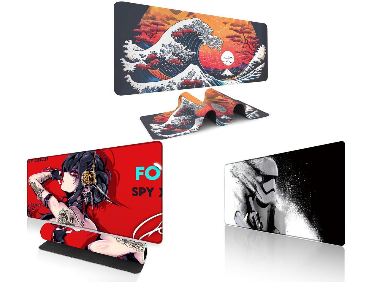 Alpha Fit Orange Sunset Great Wave Gaming Mouse Pad XXL (35.4" x 15.7") - Warm Golden Hour Japanese Art Desk Mat - Lofi Aesthetic Extended Pad and 1 x Alpha Fit Anime Gaming Mouse Pad XXL (35.4" x 15.7") - Red Rose Assassin Girl - Large Mouse Pad Extended - Extra Large Gaming Mouse Pads Secret Agent Style - 11 and 1 x Alpha Fit Star Wars Gaming Mouse Pad XXL (31.5" x 11.8") - Stormtrooper Shatter Black & White - Large Mouse Pad Extended - Sci-Fi Galaxy Empire Desk Mat 12