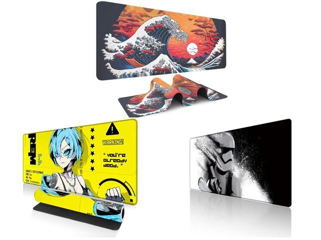 Alpha Fit Orange Sunset Great Wave Gaming Mouse Pad XXL (35.4" x 15.7") - Warm Golden Hour Japanese Art Desk Mat - Lofi Aesthetic Extended Pad and 1 x Alpha Fit Anime Gaming Mouse Pad XXL (35.4" x 15.7") - Cyberpunk Blue Haired Girl - Large Mouse Pad Extended - Extra Large Gaming Mouse Pads Yellow Caution Style - 07 and 1 x Alpha Fit Star Wars Gaming Mouse Pad XXL (31.5" x 11.8") - Stormtrooper Shatter Black & White - Large Mouse Pad Extended - Sci-Fi Galaxy Empire Desk Mat 12