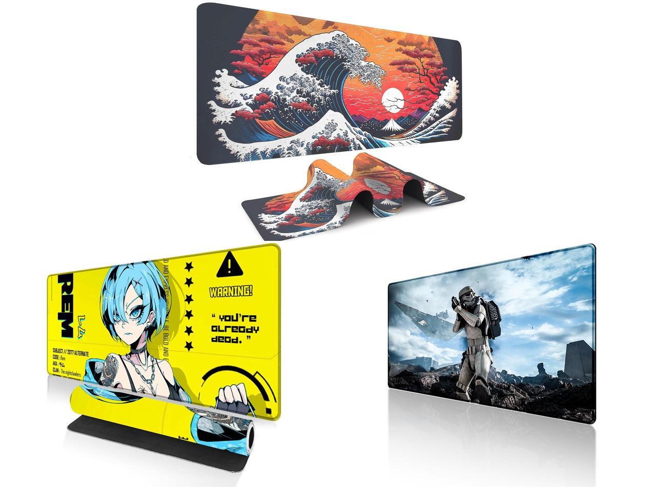 Alpha Fit Orange Sunset Great Wave Gaming Mouse Pad XXL (35.4" x 15.7") - Warm Golden Hour Japanese Art Desk Mat - Lofi Aesthetic Extended Pad and 1 x Alpha Fit Anime Gaming Mouse Pad XXL (35.4" x 15.7") - Cyberpunk Blue Haired Girl - Large Mouse Pad Extended - Extra Large Gaming Mouse Pads Yellow Caution Style - 07 and 1 x Alpha Fit Star Wars Gaming Mouse Pad XXL (31.5" x 11.8") - Imperial Stormtrooper & Star Destroyer Battle Art - Large Extended Desk Mat - Non-Slip Rubber Base for PC & Laptop Gaming Setup