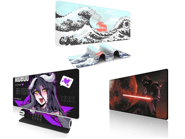 Alpha Fit Mint Green Great Wave Gaming Mouse Pad XXL (35.4" x 15.7") - Soft Teal Japanese Art Desk Mat - Fresh Nature Aesthetic Extended Keyboard Mat and 1 x Alpha Fit Anime Gaming Mouse Pad XXL (35.4" x 15.7") - Dark Fantasy Succubus Girl - Large Mouse Pad Extended - Extra Large Gaming Mouse Pads Purple Waifu Style - 02 and 1 x Alpha Fit Starwar Gaming Mouse Pad XXL (31.5" x 11.8") - Star Wars Themed Large Mouse Pad - Extra Large Gaming Mouse Pads with Non-Slip Rubber Base & Stitched Edges for Sci-Fi Setup