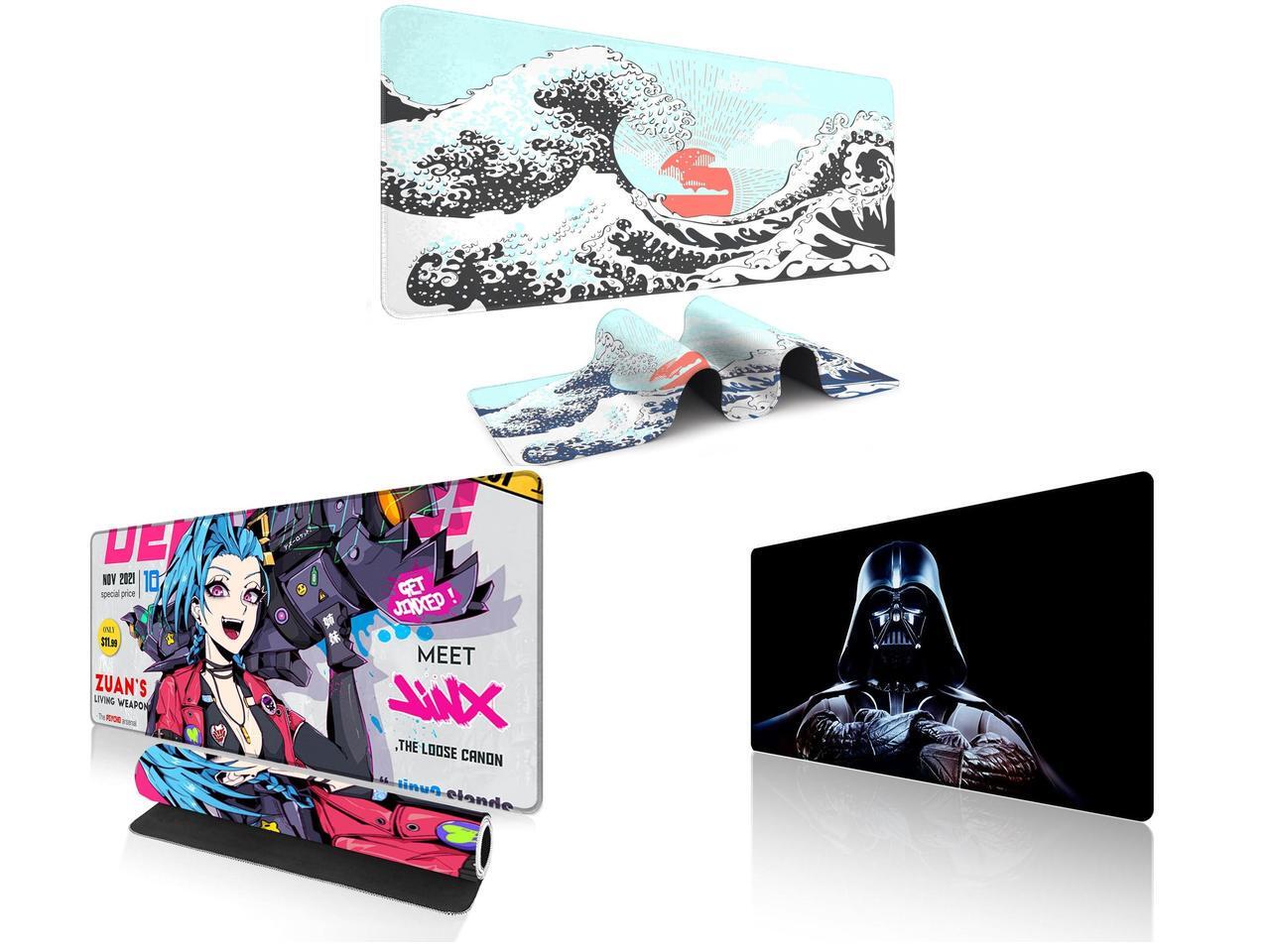 Alpha Fit Mint Green Great Wave Gaming Mouse Pad XXL (35.4" x 15.7") - Soft Teal Japanese Art Desk Mat - Fresh Nature Aesthetic Extended Keyboard Mat and 1 x Alpha Fit Anime Gaming Mouse Pad XXL (35.4" x 15.7") - Blue Punk Graffiti Girl - Large Mouse Pad Extended - Extra Large Gaming Mouse Pads Loose Cannon Style - 03 and 1 x Alpha Fit Star Wars Gaming Mouse Pad XXL (31.5" x 11.8") - Darth Vader Dark Side Art - Large Mouse Pad Extended - Extra Large Gaming Mouse Pads Sith Lord Desk Mat 31