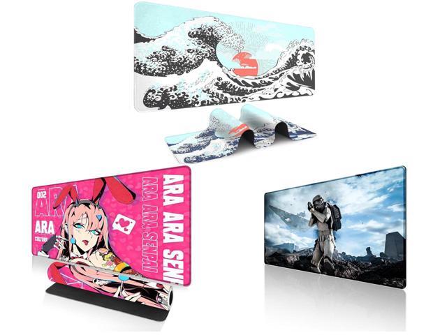 Alpha Fit Mint Green Great Wave Gaming Mouse Pad XXL (35.4" x 15.7") - Soft Teal Japanese Art Desk Mat - Fresh Nature Aesthetic Extended Keyboard Mat and 1 x Alpha Fit Anime Gaming Mouse Pad XXL (35.4" x 15.7") - Pink Bunny Girl Waifu - Large Mouse Pad Extended - Extra Large Gaming Mouse Pads Ara Ara Senpai Style - 04 and 1 x Alpha Fit Star Wars Gaming Mouse Pad XXL (31.5" x 11.8") - Imperial Stormtrooper & Star Destroyer Battle Art - Large Extended Desk Mat - Non-Slip Rubber Base for PC & Laptop Gaming Setup