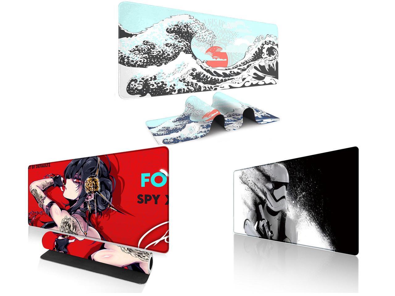 Alpha Fit Mint Green Great Wave Gaming Mouse Pad XXL (35.4" x 15.7") - Soft Teal Japanese Art Desk Mat - Fresh Nature Aesthetic Extended Keyboard Mat and 1 x Alpha Fit Anime Gaming Mouse Pad XXL (35.4" x 15.7") - Red Rose Assassin Girl - Large Mouse Pad Extended - Extra Large Gaming Mouse Pads Secret Agent Style - 11 and 1 x Alpha Fit Star Wars Gaming Mouse Pad XXL (31.5" x 11.8") - Stormtrooper Shatter Black & White - Large Mouse Pad Extended - Sci-Fi Galaxy Empire Desk Mat 12