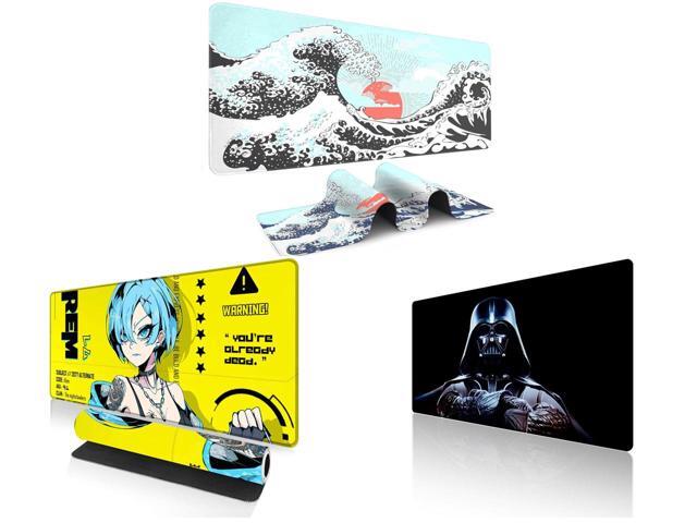 Alpha Fit Mint Green Great Wave Gaming Mouse Pad XXL (35.4" x 15.7") - Soft Teal Japanese Art Desk Mat - Fresh Nature Aesthetic Extended Keyboard Mat and 1 x Alpha Fit Anime Gaming Mouse Pad XXL (35.4" x 15.7") - Cyberpunk Blue Haired Girl - Large Mouse Pad Extended - Extra Large Gaming Mouse Pads Yellow Caution Style - 07 and 1 x Alpha Fit Star Wars Gaming Mouse Pad XXL (31.5" x 11.8") - Darth Vader Dark Side Art - Large Mouse Pad Extended - Extra Large Gaming Mouse Pads Sith Lord Desk Mat 31