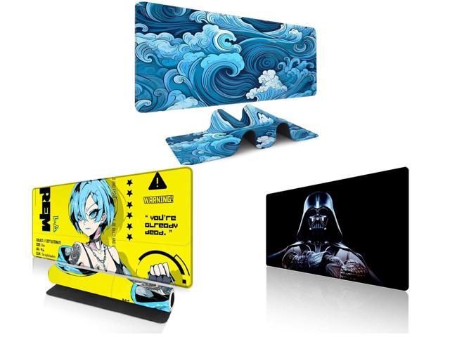 Alpha Fit Classic Great Wave off Kanagawa Gaming Mouse Pad XXL (35.4" x 15.7") - Traditional Blue Japanese Art Desk Mat - Non-Slip Rubber Base for Office and 1 x Alpha Fit Anime Gaming Mouse Pad XXL (35.4" x 15.7") - Cyberpunk Blue Haired Girl - Large Mouse Pad Extended - Extra Large Gaming Mouse Pads Yellow Caution Style - 07 and 1 x Alpha Fit Star Wars Gaming Mouse Pad XXL (31.5" x 11.8") - Darth Vader Dark Side Art - Large Mouse Pad Extended - Extra Large Gaming Mouse Pads Sith Lord Desk Mat 31