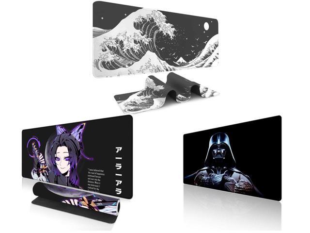 Alpha Fit Black & White Great Wave Gaming Mouse Pad XXL (35.4" x 15.7") - Monochrome Ink Wash Japanese Art Desk Mat - Minimalist Setup with Stitched Edges and 1 x Alpha Fit Anime Gaming Mouse Pad XXL (35.4" x 15.7") - Purple Butterfly Swordswoman - Large Mouse Pad Extended - Extra Large Gaming Mouse Pads Ara Ara Katana Style - 06 and 1 x Alpha Fit Star Wars Gaming Mouse Pad XXL (31.5" x 11.8") - Darth Vader Dark Side Art - Large Mouse Pad Extended - Extra Large Gaming Mouse Pads Sith Lord Desk Mat 31
