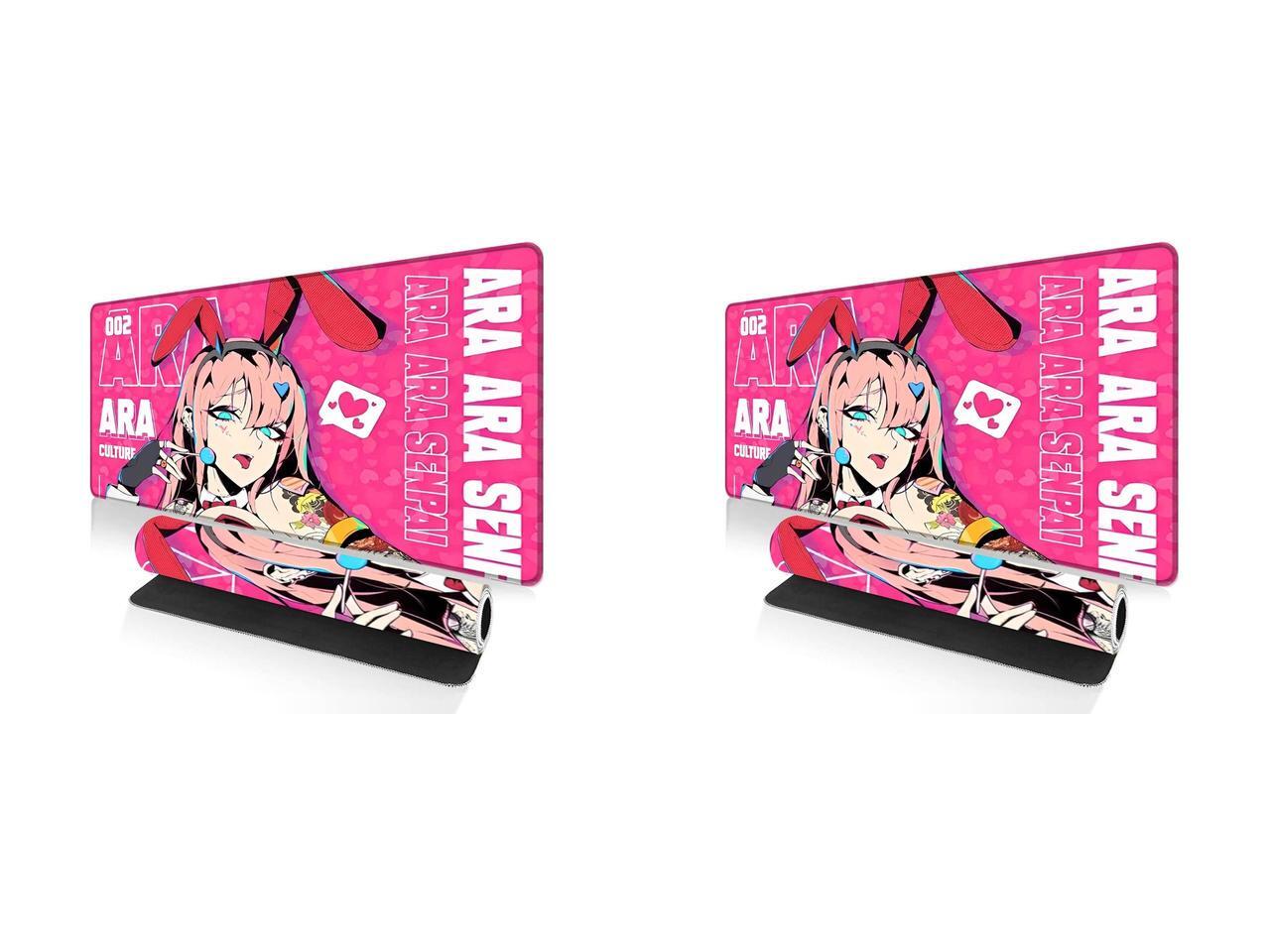 2 x Alpha Fit Anime Gaming Mouse Pad XXL (35.4" x 15.7") - Pink Bunny Girl Waifu - Large Mouse Pad Extended - Extra Large Gaming Mouse Pads Ara Ara Senpai Style - 04