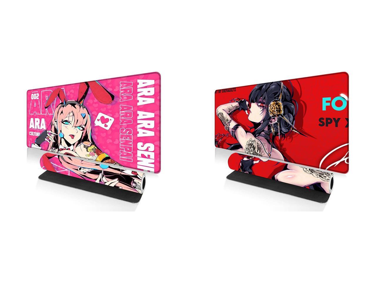 Alpha Fit Anime Gaming Mouse Pad XXL (35.4" x 15.7") - Pink Bunny Girl Waifu - Large Mouse Pad Extended - Extra Large Gaming Mouse Pads Ara Ara Senpai Style - 04 and 1 x Alpha Fit Anime Gaming Mouse Pad XXL (35.4" x 15.7") - Red Rose Assassin Girl - Large Mouse Pad Extended - Extra Large Gaming Mouse Pads Secret Agent Style - 11
