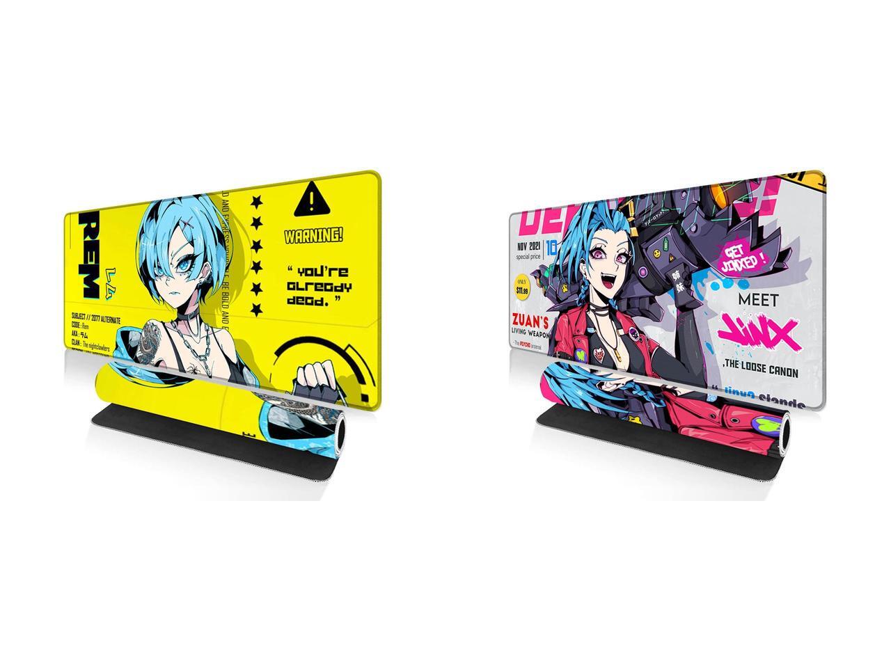 Alpha Fit Anime Gaming Mouse Pad XXL (35.4" x 15.7") - Cyberpunk Blue Haired Girl - Large Mouse Pad Extended - Extra Large Gaming Mouse Pads Yellow Caution Style - 07 and 1 x Alpha Fit Anime Gaming Mouse Pad XXL (35.4" x 15.7") - Blue Punk Graffiti Girl - Large Mouse Pad Extended - Extra Large Gaming Mouse Pads Loose Cannon Style - 03