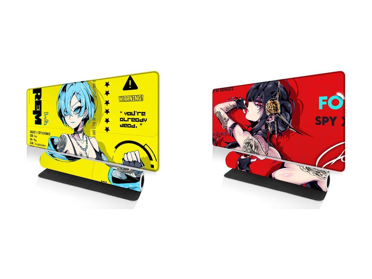 Alpha Fit Anime Gaming Mouse Pad XXL (35.4" x 15.7") - Cyberpunk Blue Haired Girl - Large Mouse Pad Extended - Extra Large Gaming Mouse Pads Yellow Caution Style - 07 and 1 x Alpha Fit Anime Gaming Mouse Pad XXL (35.4" x 15.7") - Red Rose Assassin Girl - Large Mouse Pad Extended - Extra Large Gaming Mouse Pads Secret Agent Style - 11