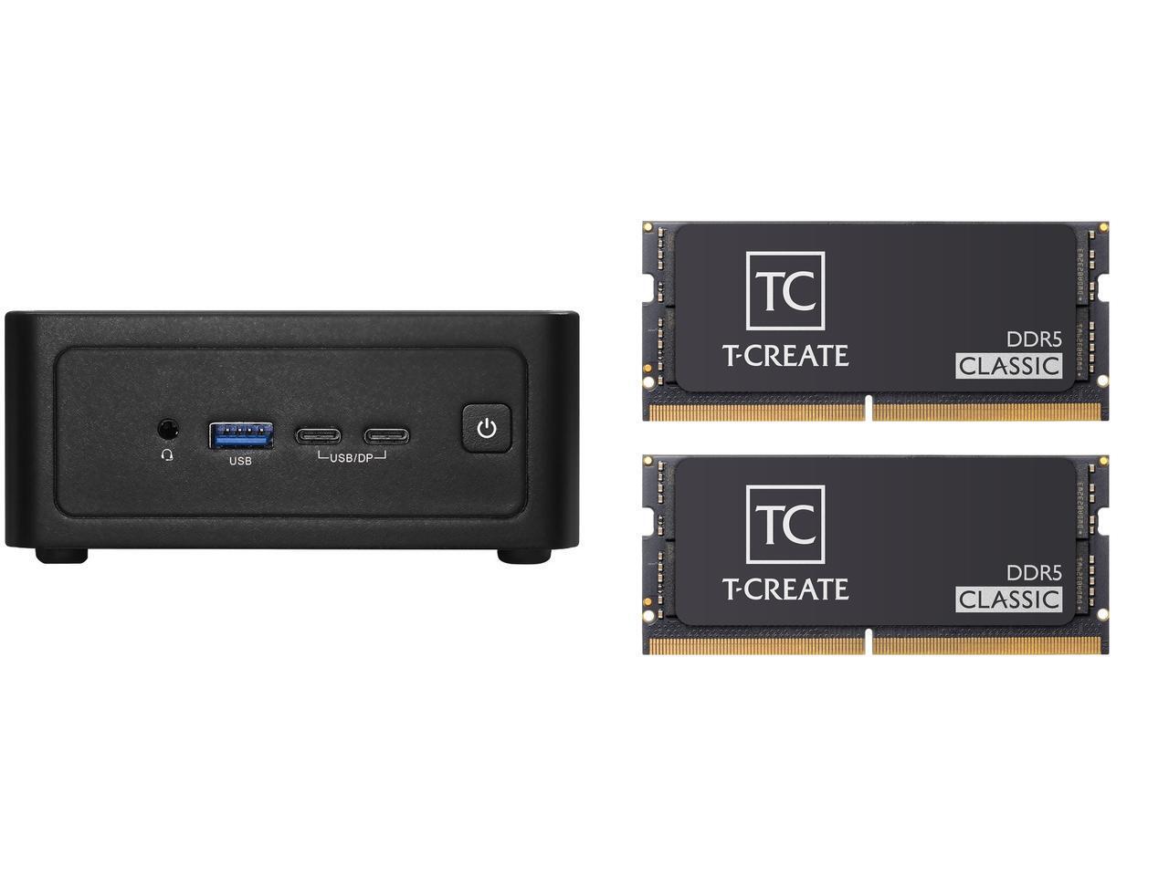 ASRock Industrial 4X4 BOX-8840U Black Fanned Barebone 2 x 262-pin SO-DIMM DDR5 5600 MHz, up to 96GB (48GB per DIMM) Team T-CREATE CLASSIC 32GB (2 x 16GB) 262-Pin DDR5 SO-DIMM DDR5 5600 (PC5 44800) Laptop Memory Model CTCCD532G5600HC46ADC-S