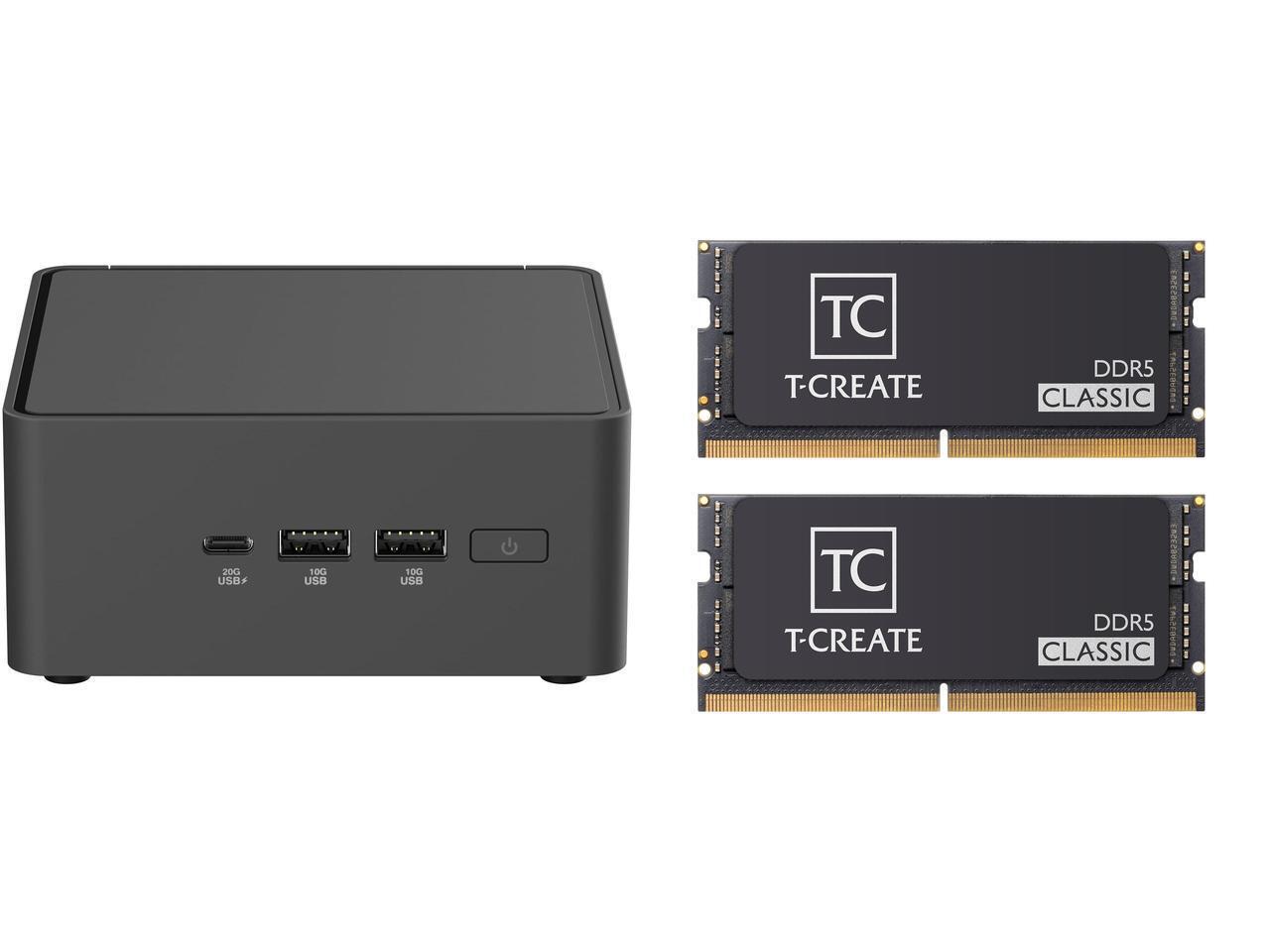 Asus NUC 15 Pro RNUC15CRHI30000U mini PC Barebone System with Intel Series 1 Core 3 100U, Dual Storage Design, Thunderbolt 4, Wi-Fi 7 & Bluetooth 5.4, VESA Mount Included Team T-CREATE CLASSIC 32GB (2 x 16GB) 262-Pin DDR5 SO-DIMM DDR5 5600