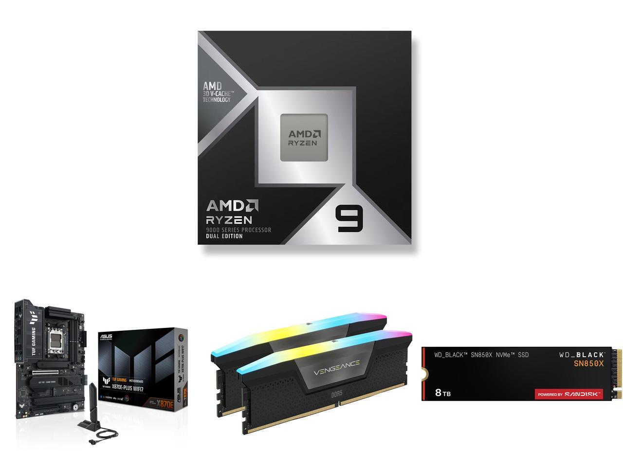 CPU Motherboard Memory SSD Combo - AMD 100-100001978WOF Bundle with ASUS TUF GAMING X870E-PLUS WIFI7 and Corsair CMH32GX5M2N6400C36 and SanDisk WDS800T2X0E
