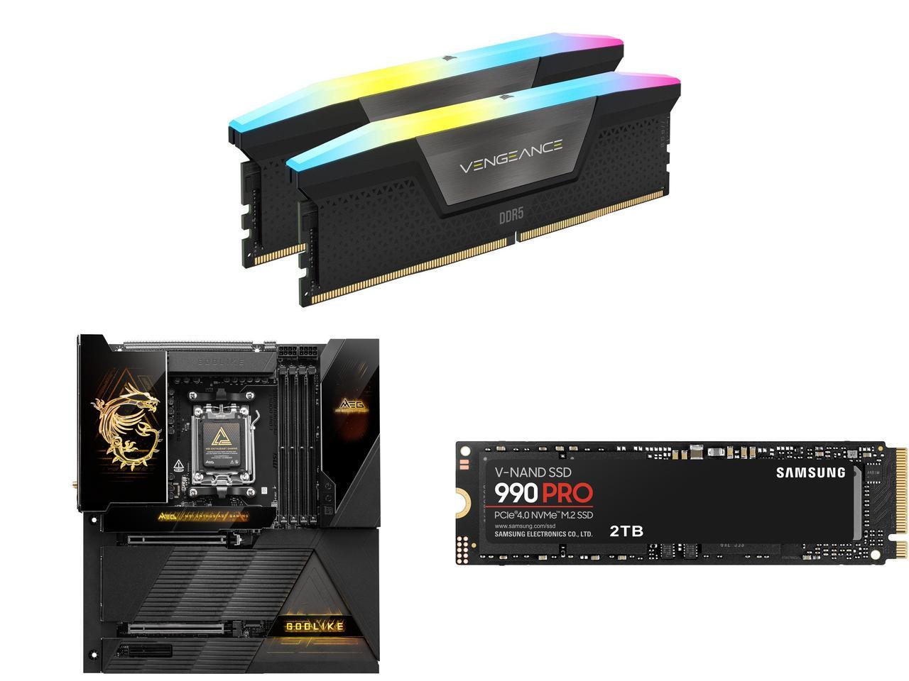 CORSAIR Vengeance RGB 96GB (2 x 48GB) 288-Pin PC RAM DDR5 6800 (PC5 54400) Desktop Memory Model CMH96GX5M2B6800C40 MSI MEG X870E GODLIKE AM5 Extended ATX Motherboard SAMSUNG 990 PRO 2TB SSD, PCIe Gen4 M.2 2280, Seq. Read Speeds Up-to 7,450M