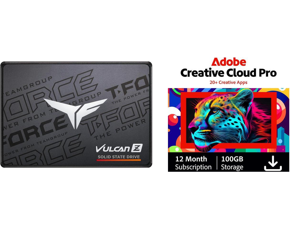 Team Group T-FORCE VULCAN Z 2.5" 1TB SATA III 3D NAND Internal Solid State Drive (SSD) T253TZ001T0C101 Adobe Creative Cloud Pro | 20+ creative apps plus 100GB Storage | 12-Month Subscription | PC/Mac