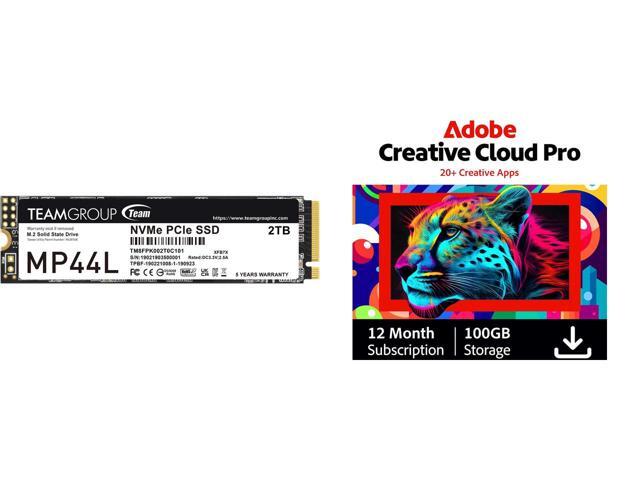 Team Group MP44L M.2 2280 2TB PCIe 4.0 x4 with NVMe 1.4 TM8FPK002T0C101 Adobe Creative Cloud Pro | 20+ creative apps plus 100GB Storage | 12-Month Subscription | PC/Mac