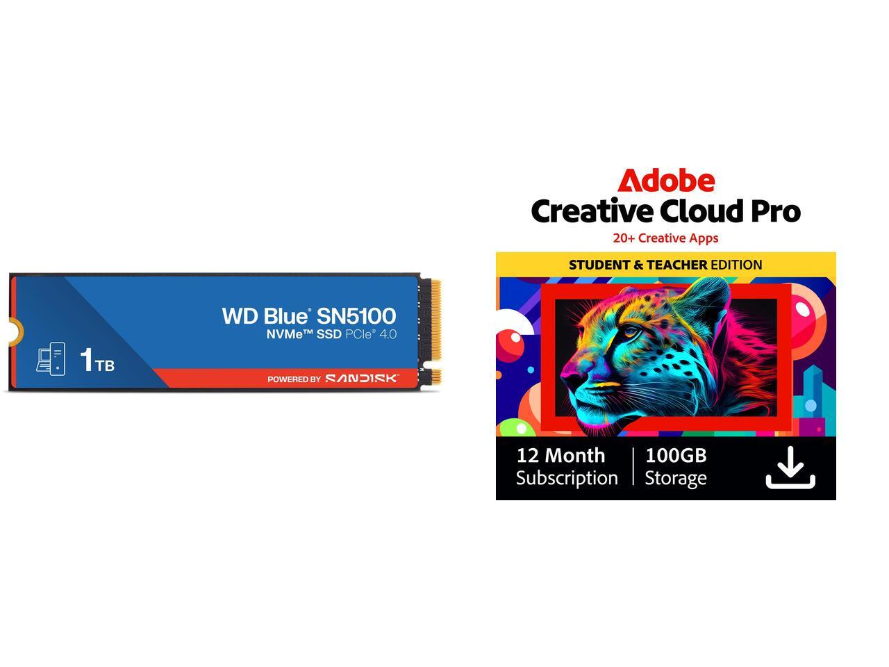 WD Blue SN5100 1TB NVMe SSD, PCIe Gen 4.0, up to 7,100 MB/s read speeds Adobe Creative Cloud Pro | Student & Teacher Edition | 20+ creative apps plus 100GB Storage | 12-Month Subscription | PC/Mac