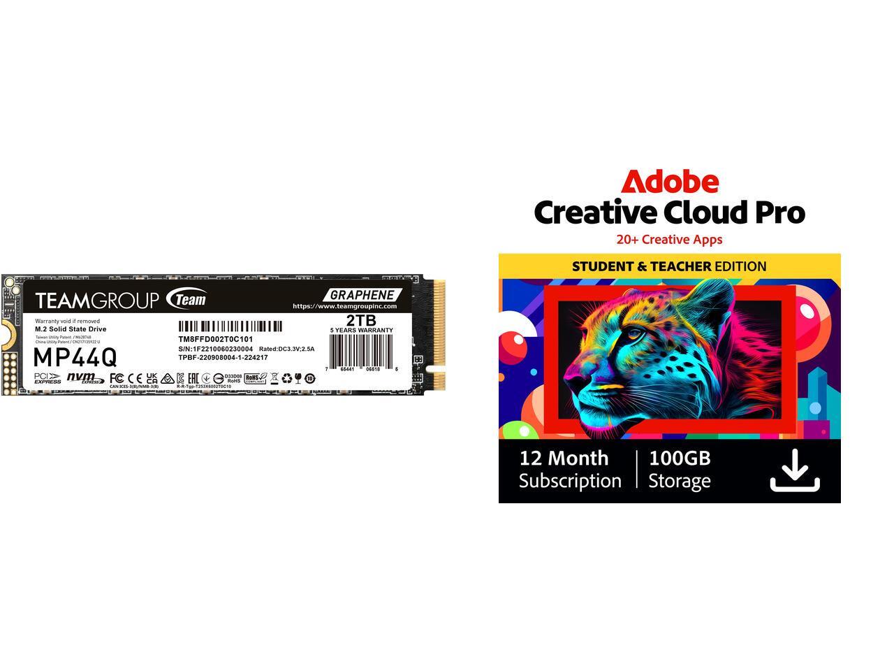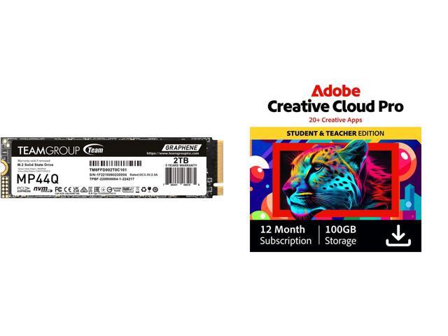 TEAMGROUP MP44Q 2TB PCIe Gen4 x4 M.2 2280 SSD Laptop & Desktop & NUC & NAS compatible, Speed up to 7400MB/s (TM8FFD002T0C101) Adobe Creative Cloud Pro | Student & Teacher Edition | 20+ creative apps plus 100GB Storage | 12-Month Subscriptio