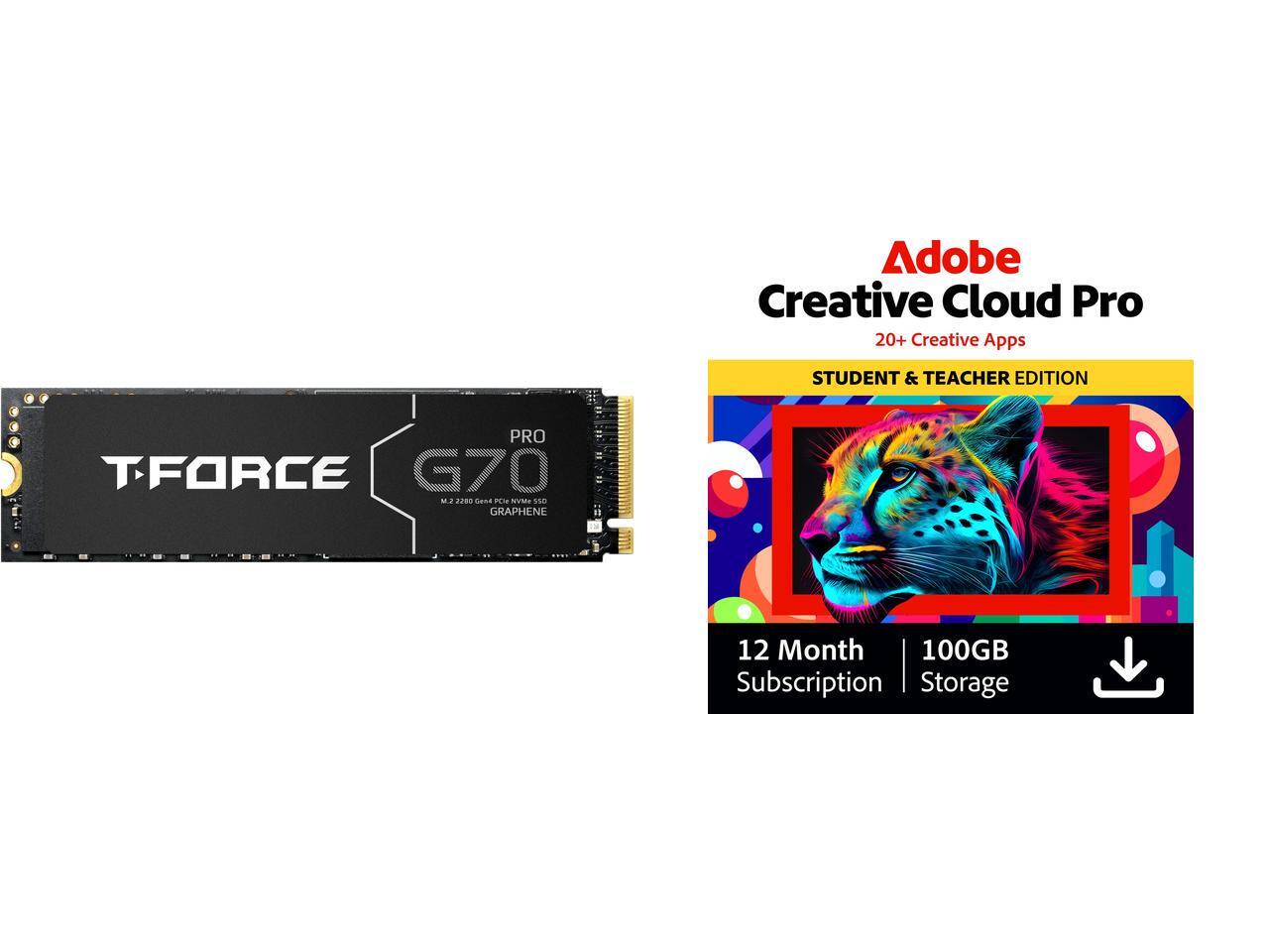 Team Group T-FORCE G70 PRO Graphene M.2 2280 4TB PCIe 4.0 x4 with NVMe 1.4 TLC Internal Solid State Drive (SSD) TM8FFH004T0C129 Adobe Creative Cloud Pro | Student & Teacher Edition | 20+ creative apps plus 100GB Storage | 12-Month Subscript
