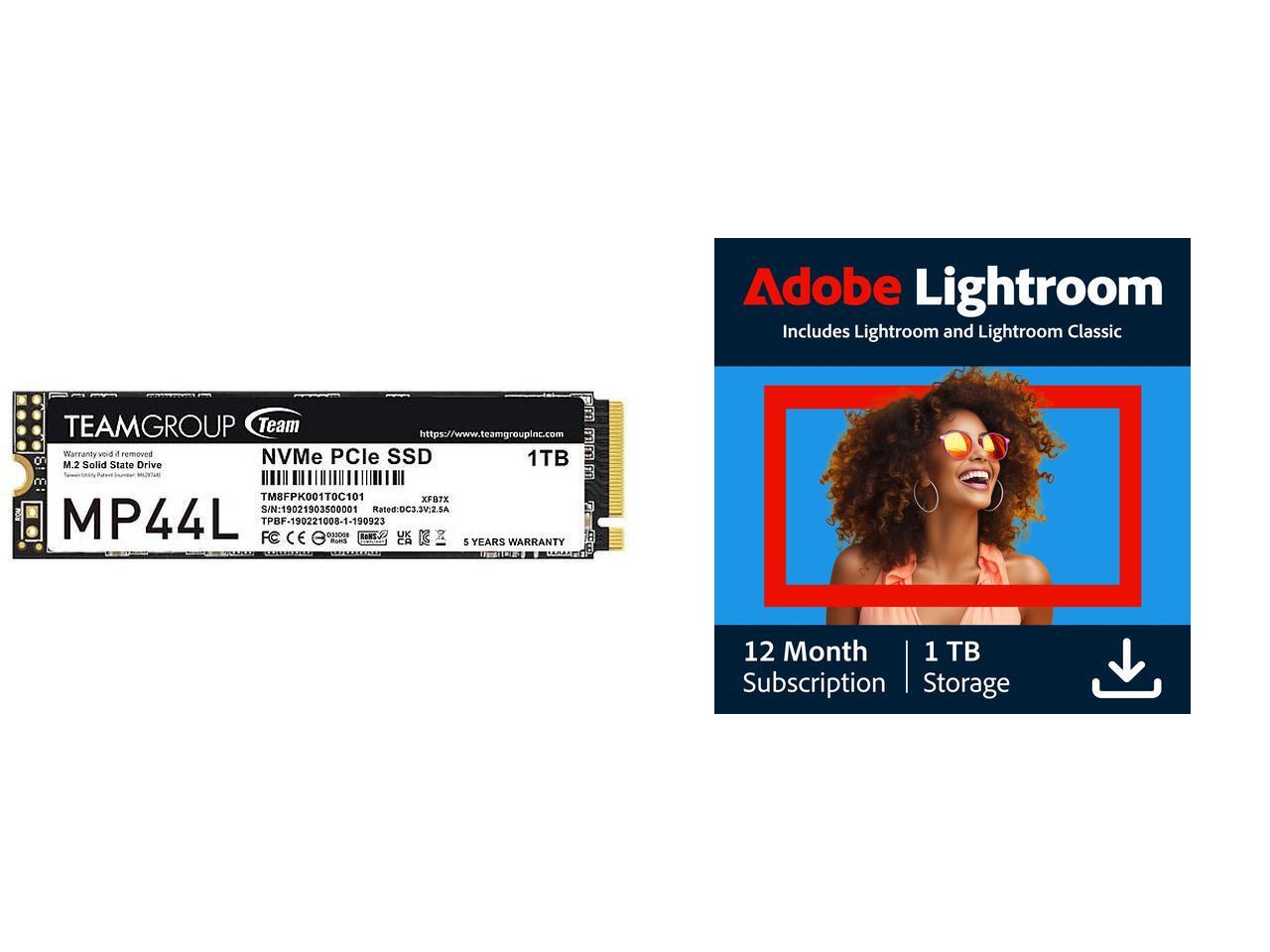 Team Group MP44L M.2 2280 1TB PCIe 4.0 x4 with NVMe 1.4 TLC Internal Solid State Drive (SSD) TM8FPK001T0C101 Adobe - Lightroom 1TB - AI-assisted photo editor (1 Year Subscription) - Mac, Windows [Digital]