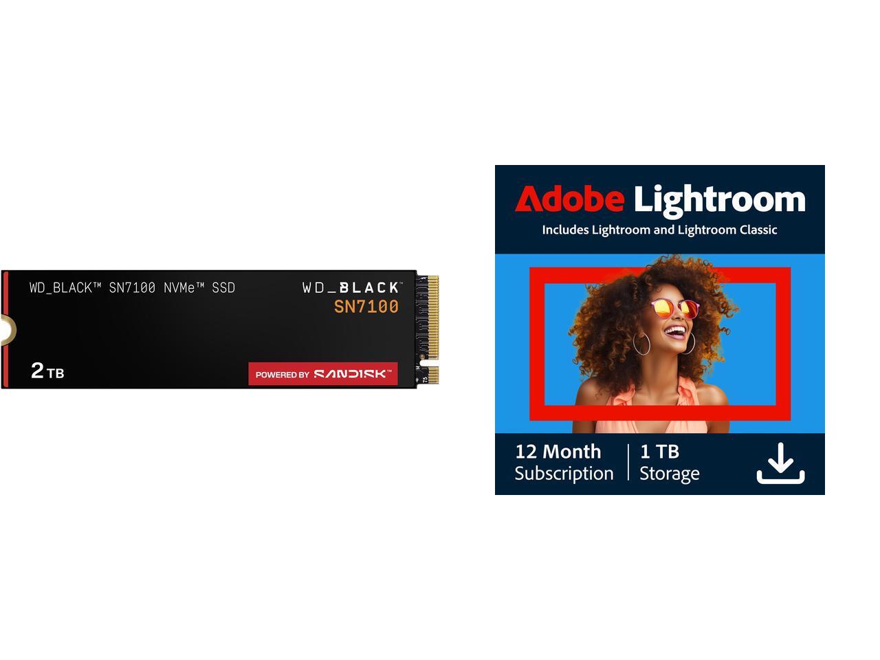 WD_BLACK SN7100 M.2 2280 2TB PCI-Express 4.0 x4 TLC 3D NAND Internal Solid State Drive (SSD) WDS200T4X0E Adobe - Lightroom 1TB - AI-assisted photo editor (1 Year Subscription) - Mac, Windows [Digital]