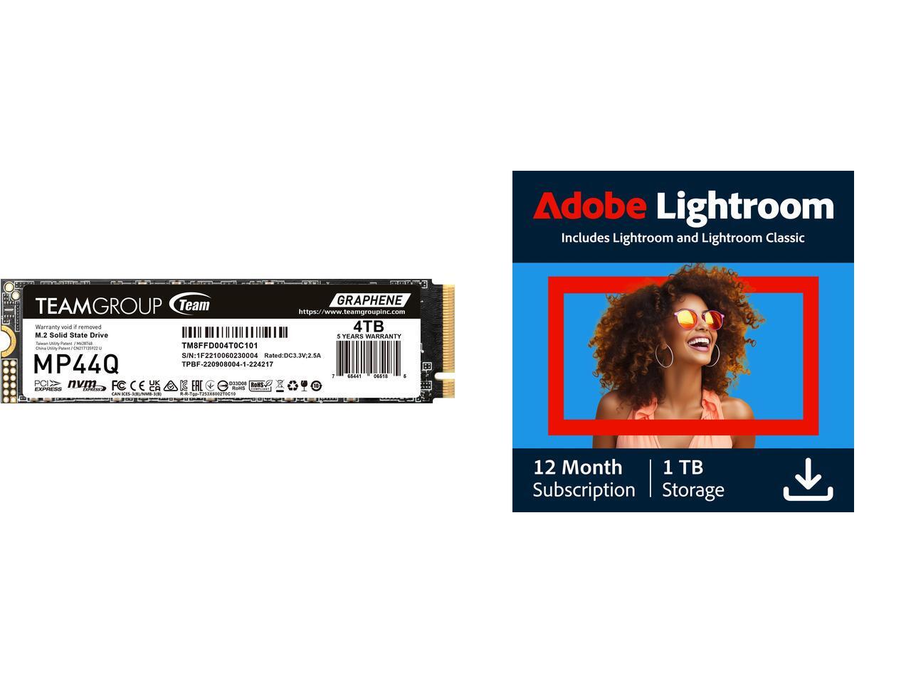 TEAMGROUP MP44Q 4TB PCIe Gen4 x4 M.2 2280 SSD Laptop & Desktop & NUC & NAS compatible, Speed up to 7400MB/s (TM8FFD004T0C101) Adobe - Lightroom 1TB - AI-assisted photo editor (1 Year Subscription) - Mac, Windows [Digital]
