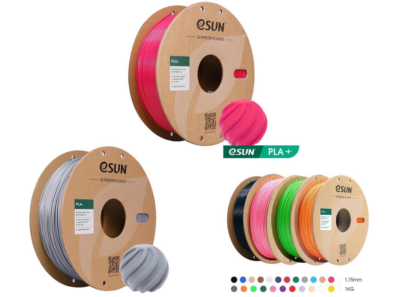 eSUN PLA+ Filament 1.75mm, 3D Printer Filament PLA Plus, Dimensional Accuracy +/- 0.03mm, 1KG Spool (2.2 LBS) 3D Printing Filament for 3D Printers Magenta and 1 x eSUN PLA+ Filament 1.75mm, 3D Printer Filament PLA Plus, Dimensional Accuracy +/- 0.03mm, 1KG Spool (2.2 LBS) 3D Printing Filament for 3D Printers Silver and 1 x eSUN PLA+ Filament 1.75mm, 3D Printer Filament PLA Plus, Dimensional Accuracy +/- 0.03mm, 1KG Spool (2.2 LBS) 3D Printing Filament for 3D Printers