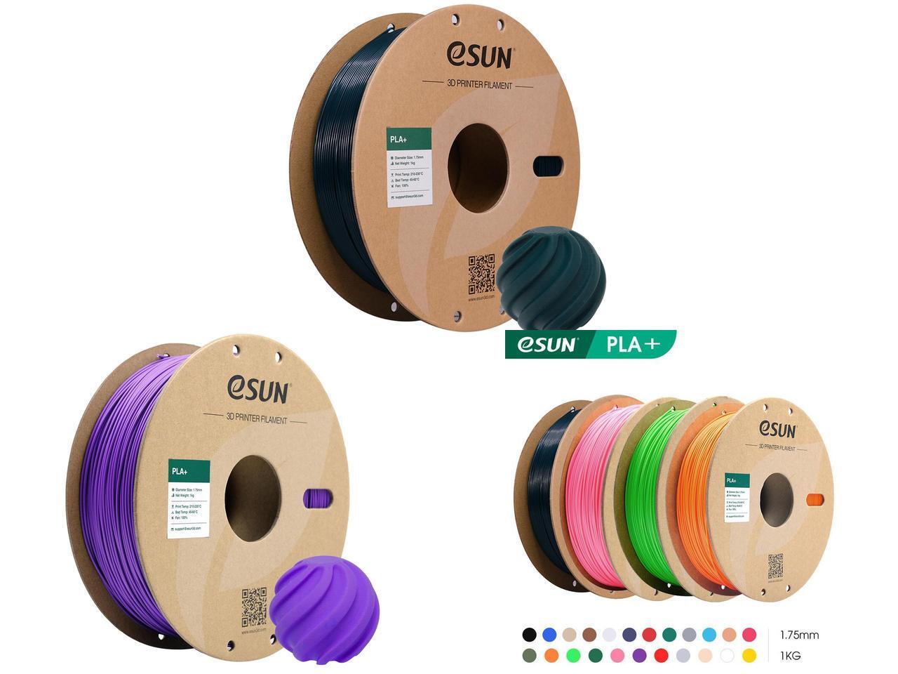 eSUN PLA+ Filament 1.75mm, 3D Printer Filament PLA Plus, Dimensional Accuracy +/- 0.03mm, 1KG Spool (2.2 LBS) 3D Printing Filament for 3D Printers Green and 1 x eSUN PLA+ Filament 1.75mm, 3D Printer Filament PLA Plus, Dimensional Accuracy +/- 0.03mm, 1KG Spool (2.2 LBS) 3D Printing Filament for 3D Printers Purple and 1 x eSUN PLA+ Filament 1.75mm, 3D Printer Filament PLA Plus, Dimensional Accuracy +/- 0.03mm, 1KG Spool (2.2 LBS) 3D Printing Filament for 3D Printers