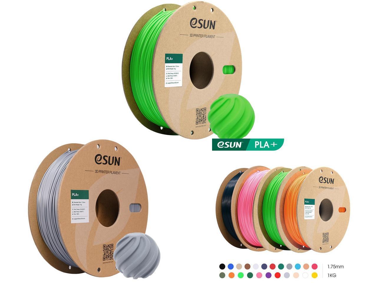 eSUN PLA+ Filament 1.75mm, 3D Printer Filament PLA Plus, Dimensional Accuracy +/- 0.03mm, 1KG Spool (2.2 LBS) 3D Printing Filament for 3D Printers Peak Green and 1 x eSUN PLA+ Filament 1.75mm, 3D Printer Filament PLA Plus, Dimensional Accuracy +/- 0.03mm, 1KG Spool (2.2 LBS) 3D Printing Filament for 3D Printers Silver and 1 x eSUN PLA+ Filament 1.75mm, 3D Printer Filament PLA Plus, Dimensional Accuracy +/- 0.03mm, 1KG Spool (2.2 LBS) 3D Printing Filament for 3D Printers