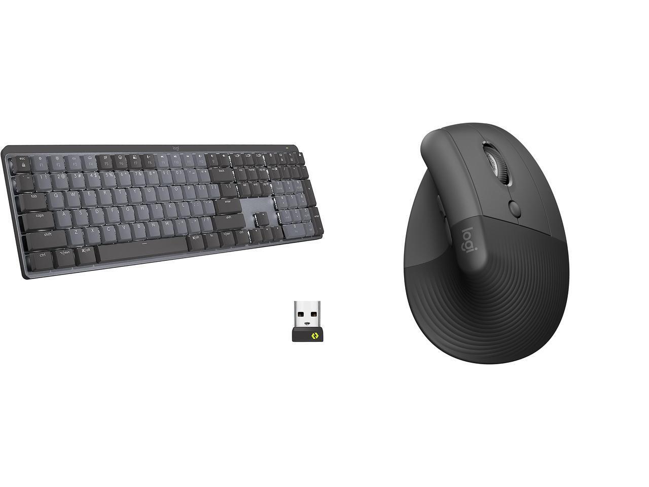 Logitech MX Mechanical Wireless Illuminated Performance Keyboard, Clicky Switches, Backlit Keys, Bluetooth, USB-C, macOS, Windows, Linux, iOS, Android, Graphite Logitech Lift Vertical Ergonomic Mouse, Wireless, Bluetooth or Logi Bolt USB re