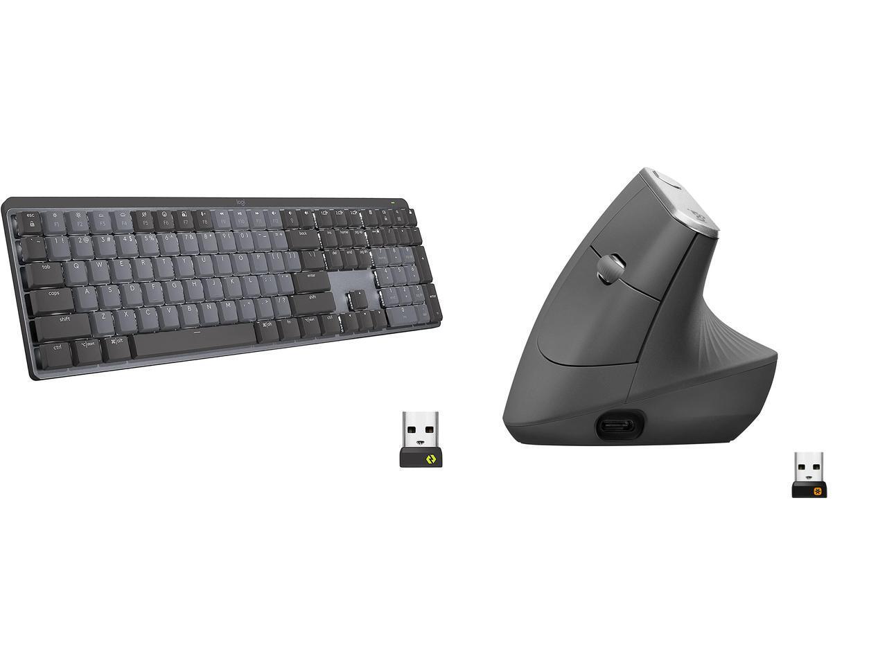 Logitech MX Mechanical Wireless Illuminated Performance Keyboard, Linear Switches, Backlit Keys, Bluetooth, USB-C, macOS, Windows, Linux, iOS, Android, Graphite Logitech MX Vertical Wireless Mouse – Advanced Ergonomic Design Reduces Muscle